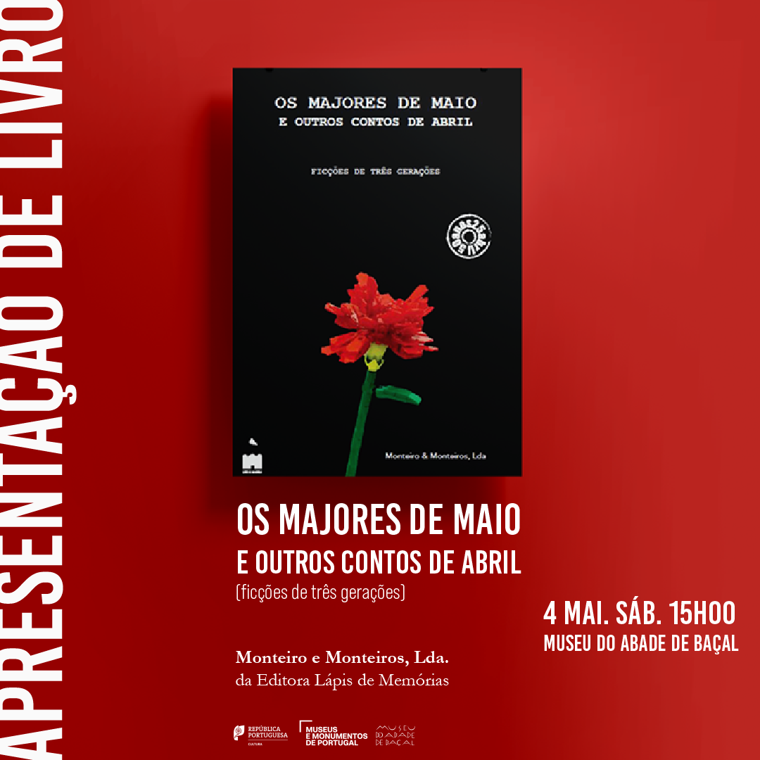 Para assinalar os 50 anos do 25 de abril terá lugar no dia 4 de maio (sábado), às 15h00, a apresentação do livro OS MAJORES DE MAIO E OUTROS CONTOS DE ABRIL (FICÇÕES DE TRÊS GERAÇÕES), do coletivo Monteiro & Monteiros, Lda, da Editora “Lápis de Memórias”.